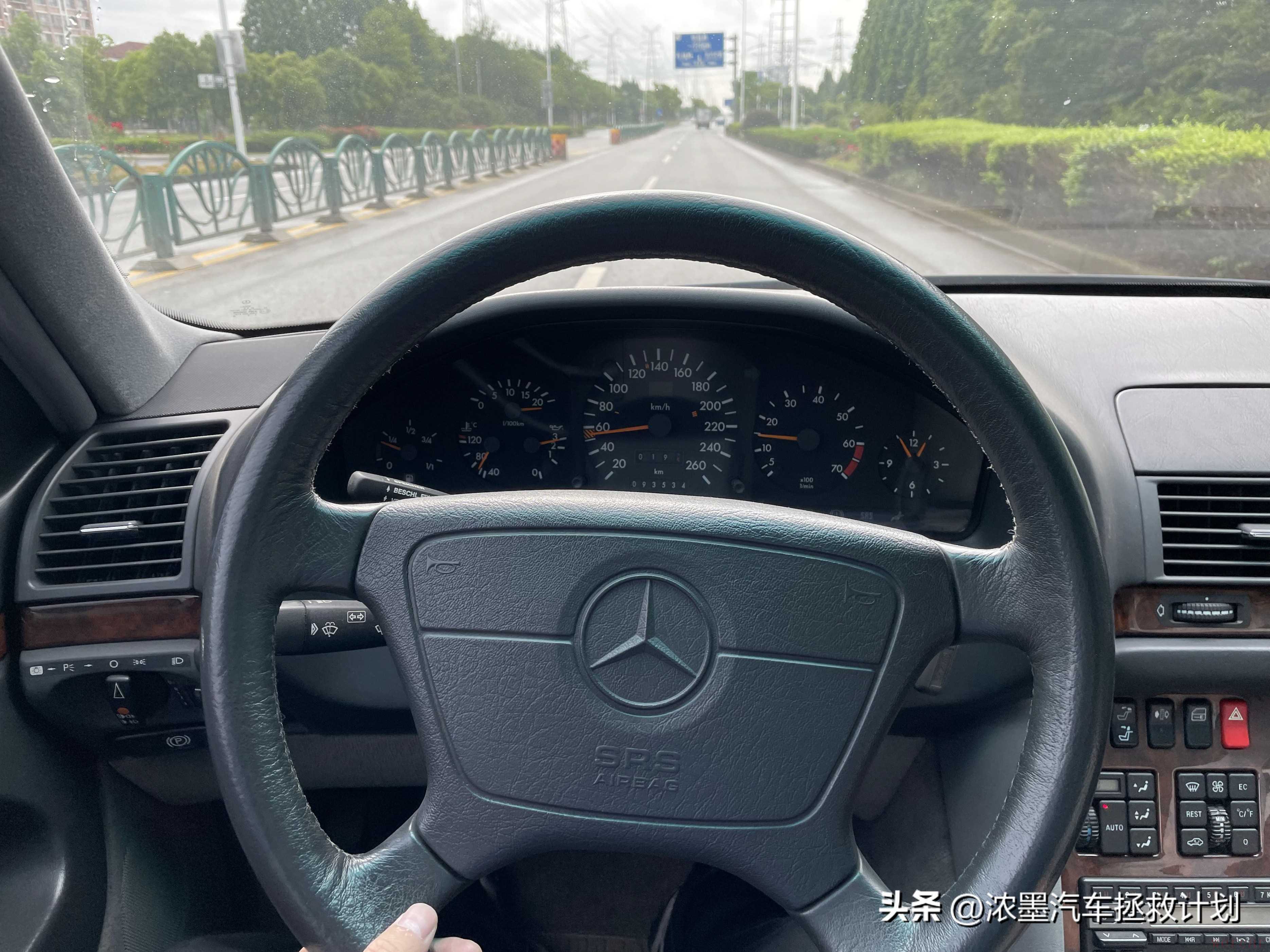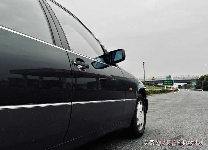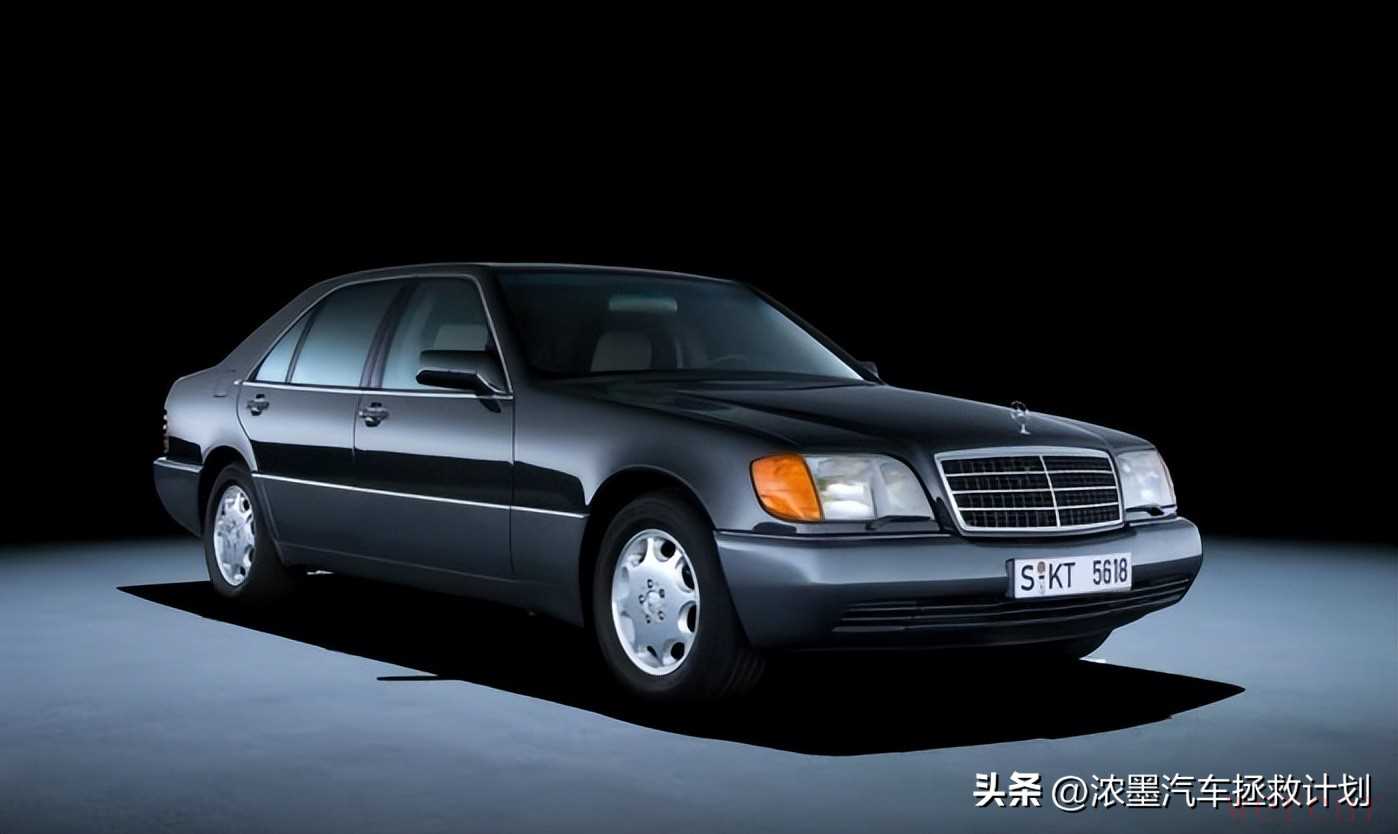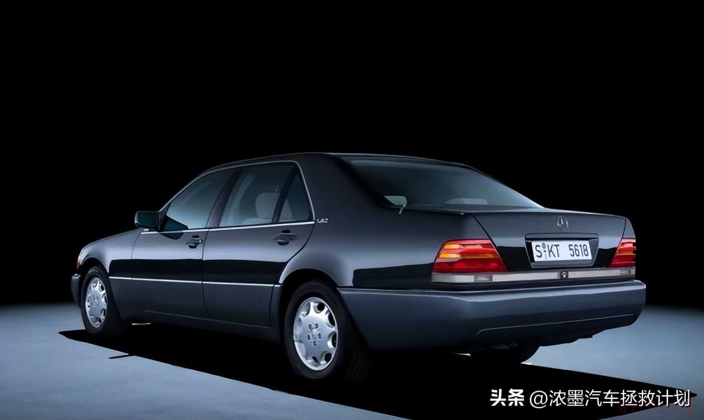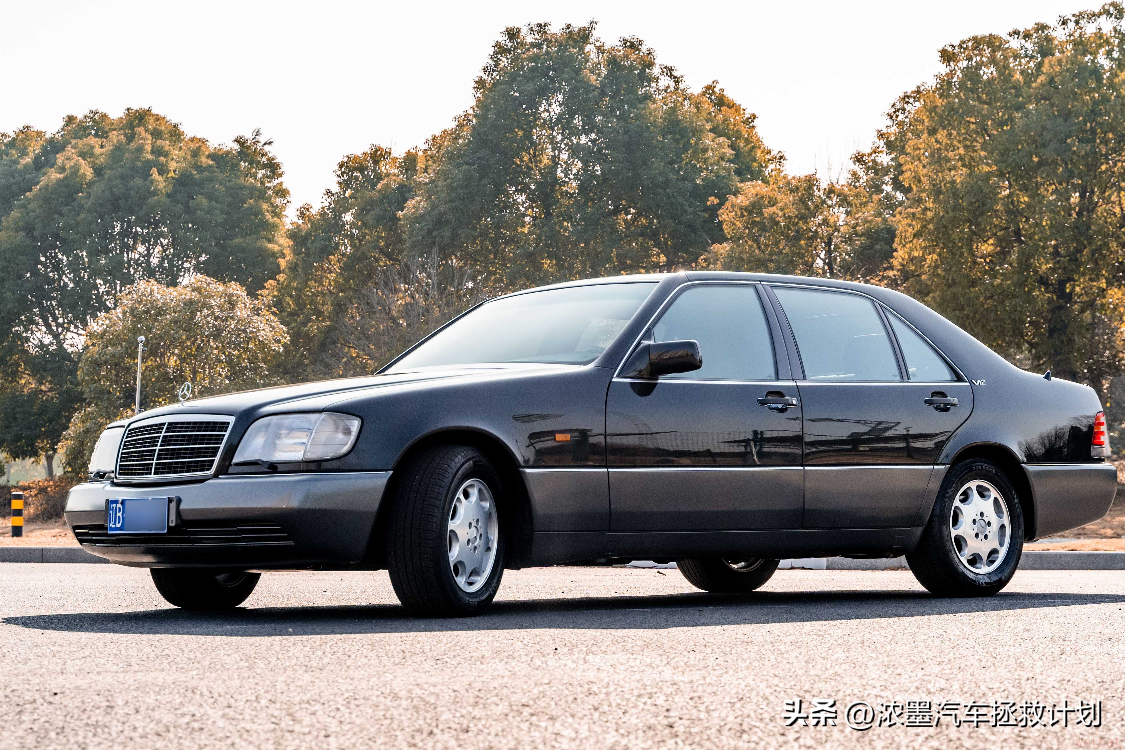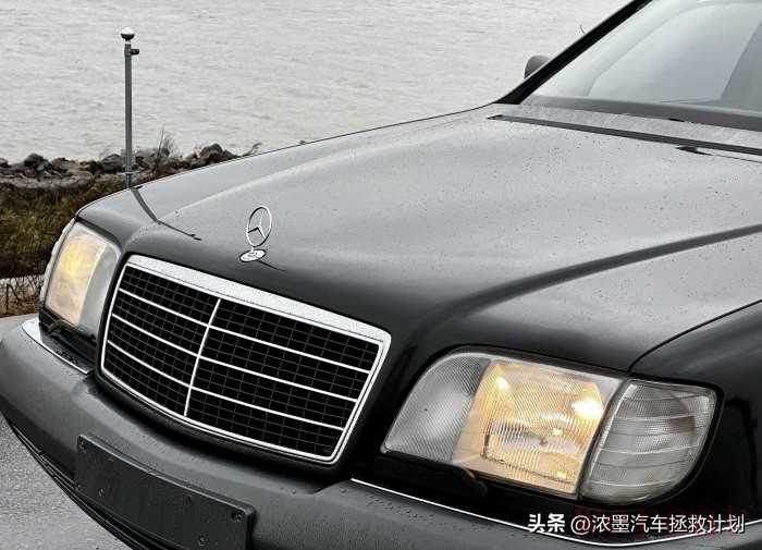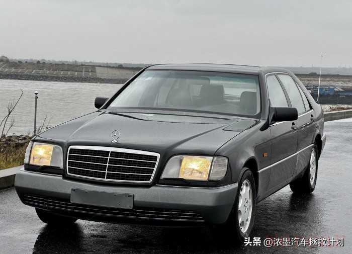 图上是一台1993年初的W140的顶配版本,搭载V12的大排骨发动机,早期款的转向灯是黄色的,后期就换成同色的水晶灯了。