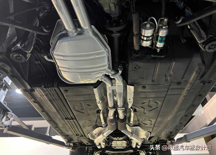 底盘一览,这个时候的环保要求和今日不同,还没有配备三元催化装置。