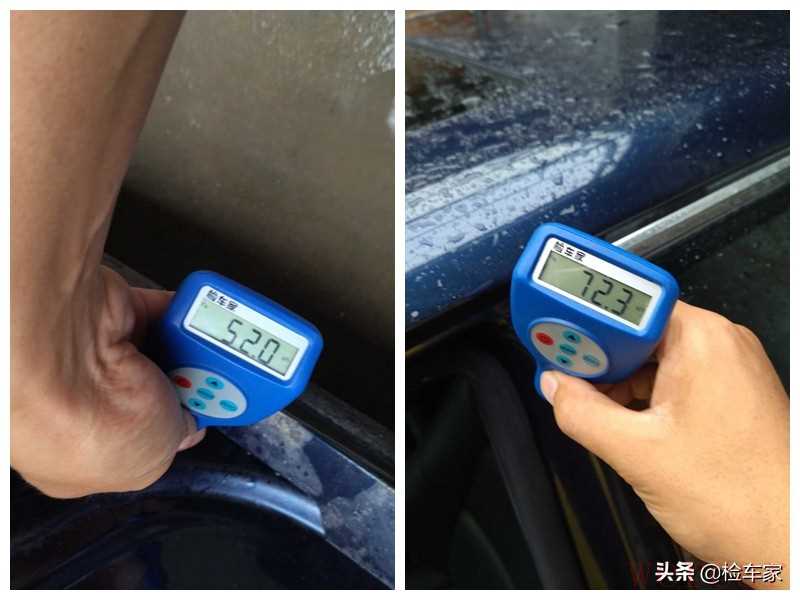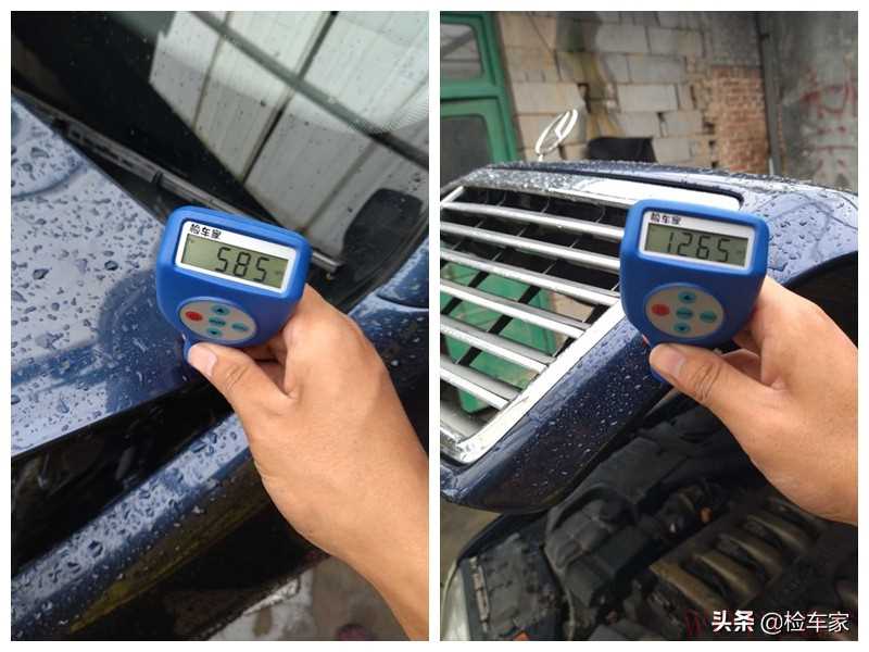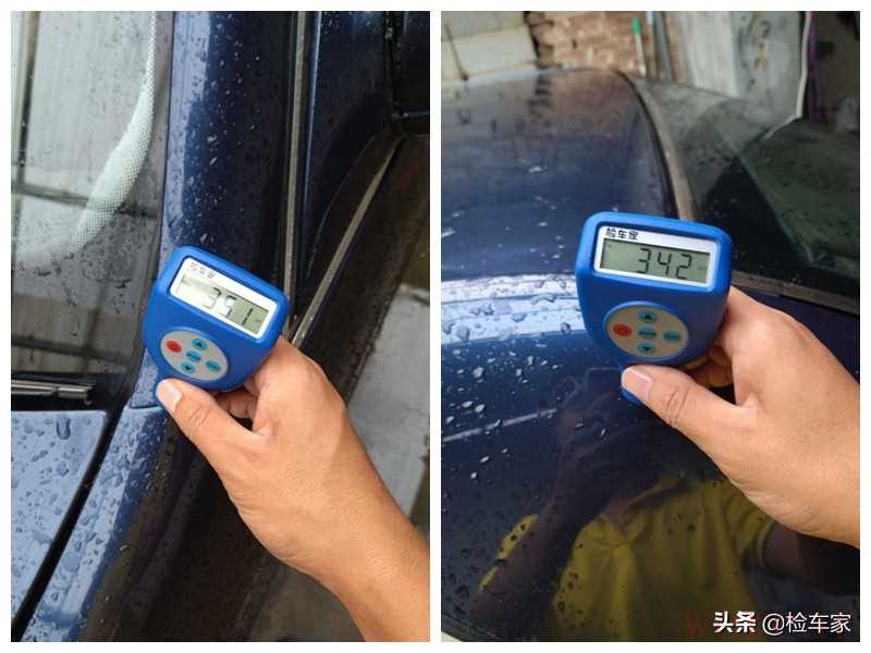 随后我发现A柱和大顶的漆面数值很平均,都是300多的样子,如果不看漆面瑕疵的话,你们会不会认为这样的老车,漆面就是很厚呢?