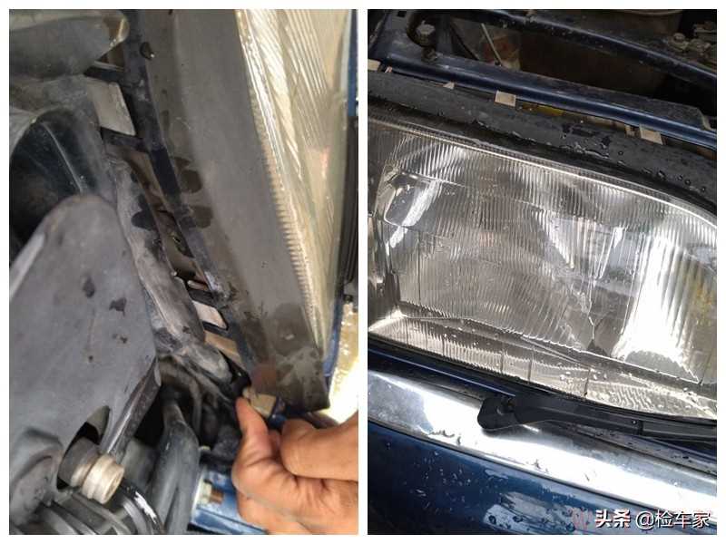 那下面就正式开始检测环节,首先还是先看外观,前头部分,两侧的大灯都有过更换,水箱框架的上部有过拆卸,看来前面可能有点事。