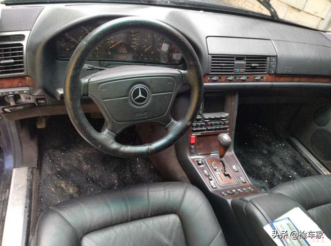虽然这辆奔驰S600在当年可能价值北京的十套房,但毕竟是20多年前的车了,这内饰看上去确实是很拉胯了,连个多功能方向盘都没有。也是,那个时候像什么CAR PLAY、导航、蓝牙,甚至倒车影像都没有,哪里用得上多功能方向盘呢。而且我刚打开车门,就有一股浓浓的霉味扑面而来,把患有鼻炎的我熏了个猝不及防,以至于我严重怀疑这是一辆水泡车。那咱们就来看一下细节,好好欣赏一下曾经的王者。
