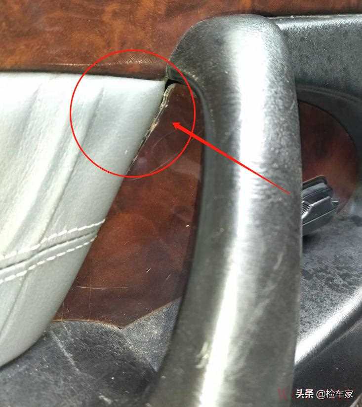 看看左前门的把手,都有这么明显厚重的一层包浆了,没少盘啊,代表着高端豪华的桃木饰板也经不起岁月的摧残,在一次次的拆卸下,也开始了松脱开裂了。