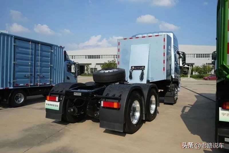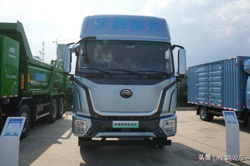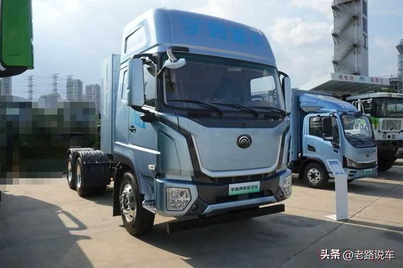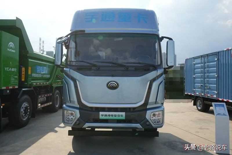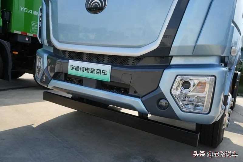 这辆蓝色的6×4纯电动牵引车就是宇通T590E,外观造型流畅大气,颜色清爽明快,整体造型更具科技感。