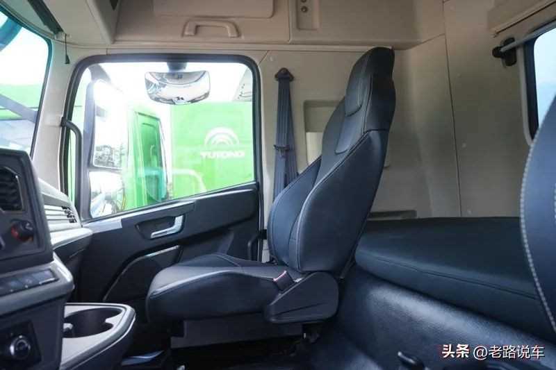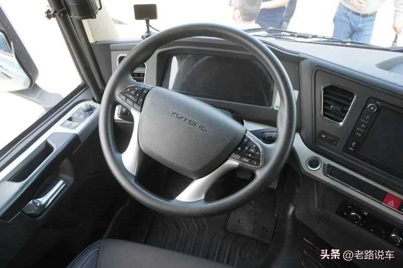 宇通T590E的驾驶室高大挺拔,打开车门来到车内,内饰颜色以上米黄下黑为主,风格简约大气。平地板驾驶室空间很大,有着较好的舒适性,细节做工也十分精致。