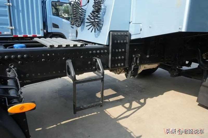 车架右侧设有台阶可供驾驶员来到动力电池舱后方的工作平台上。车架右侧空间相对比较充裕,未来生产的车型可以考虑把备胎架布置在这里以提高空间利用率。