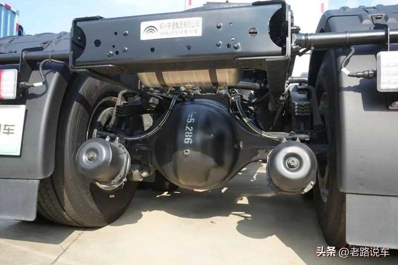 车桥来自宇通自家的精益达车桥,前桥7吨级,驱动桥2×13吨级,驱动桥主减速比5.286。