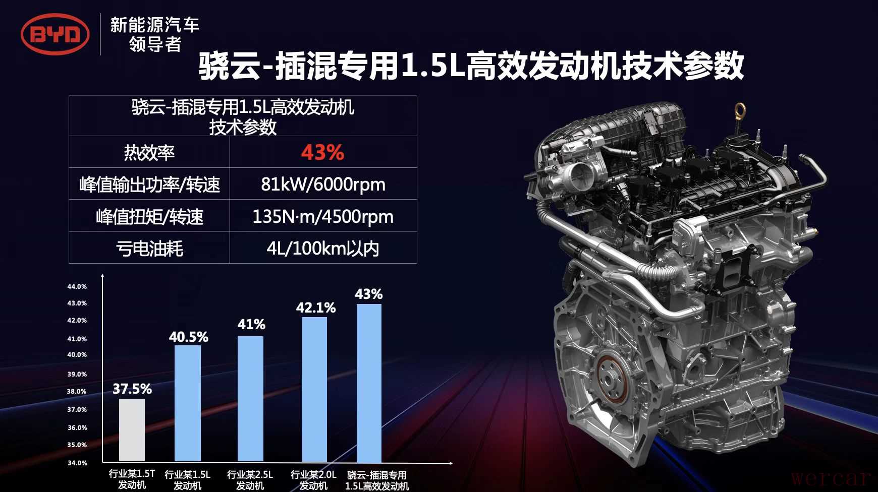作为新能源汽车的领导者,比亚迪的确是在插混技术上堆了不少“黑科技”——骁云-插混专用1.5L高效发动机运用了“阿特金森循环+歧管喷射+超高压缩比+冷却EGR技术+高能点火+降低摩擦+优化控制系统”等等技术,从而实现热效率43%的目标。