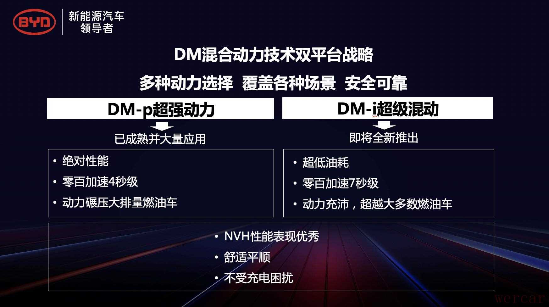 而比亚迪率先进入DM混动技术的“双平台”战略时代,将使插电混动车型对传统燃油车的“渗透”进一步增强。已经成熟的DM-p超强动力技术提供碾压大排量燃油车的动力性能,吸引对驾驶乐趣有较高需求,也关注环保、向往绿色生活方式的消费者群体;全新的DM-i超级混动技术将进一步重塑插电混动车与燃油车之间的竞争关系,更将强烈改变消费者对中国品牌和外资品牌的印象。