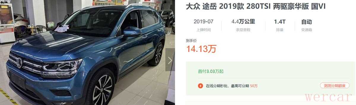 这台2019年7月上牌的大众途岳,开了4.4万公里,现在卖14.13万元,结合目前新车优惠后的价格,卖价有些偏高,实际成交价格应该更低一点,但整体保值率还是较高的。