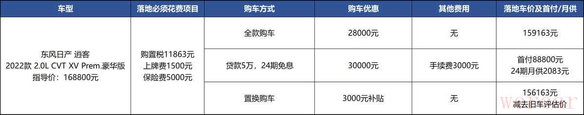 全系优惠2.8万元,以“2022款 2.0L CVT XV Prem.豪华版”为例,硬性费用包括保险费用(约5000元)、上牌费(约1500元)、购置税(约11863元),最后落地价格大概在159163元。