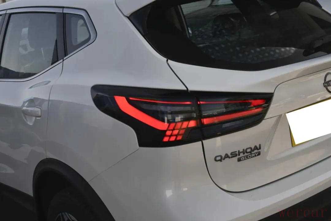 逍客荣誉的车身轮廓紧凑扎实,上扬的腰线、黑色轮眉等元素提升了运动感,熏黑尾灯内部构造清晰可见,红色LED光源亮起后很漂亮。