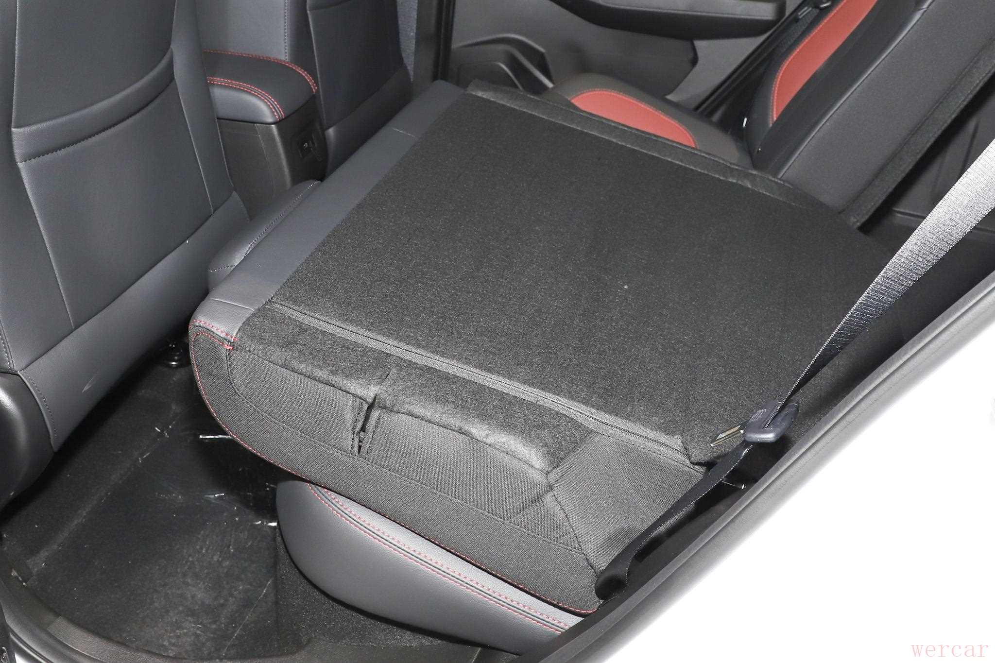 后排空间表现舒展,地板平整度高,3个人乘坐不局促不压抑,座椅厚实并配备2个头枕,支持40:60折叠放倒,中间带有电源接口。