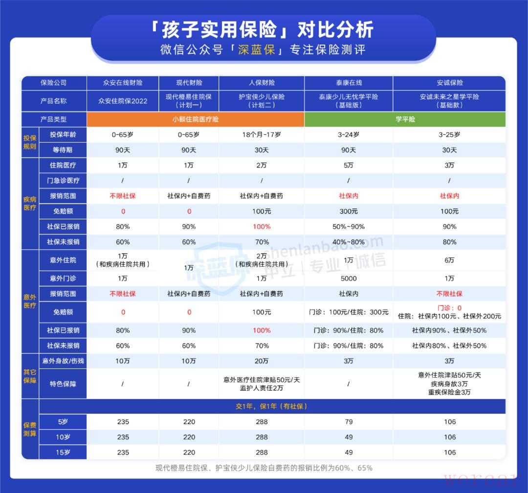 - 如果想要报销条件更好:可以考虑众安住院保2022,不限社保报销,并且也没有免赔额;现代橙易住院保和护宝侠报销比例更高一点,但是只能保社保内和自费药的费用。