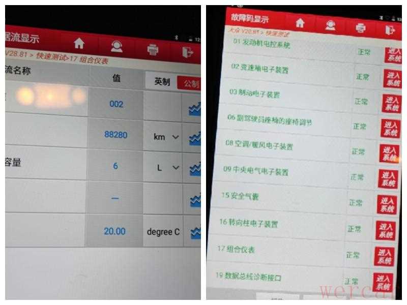 接下来读了一下整车的模块,也都没有什么问题,没有故障码,并且里程数也和表显里程对得上。下面就是底盘检测了。