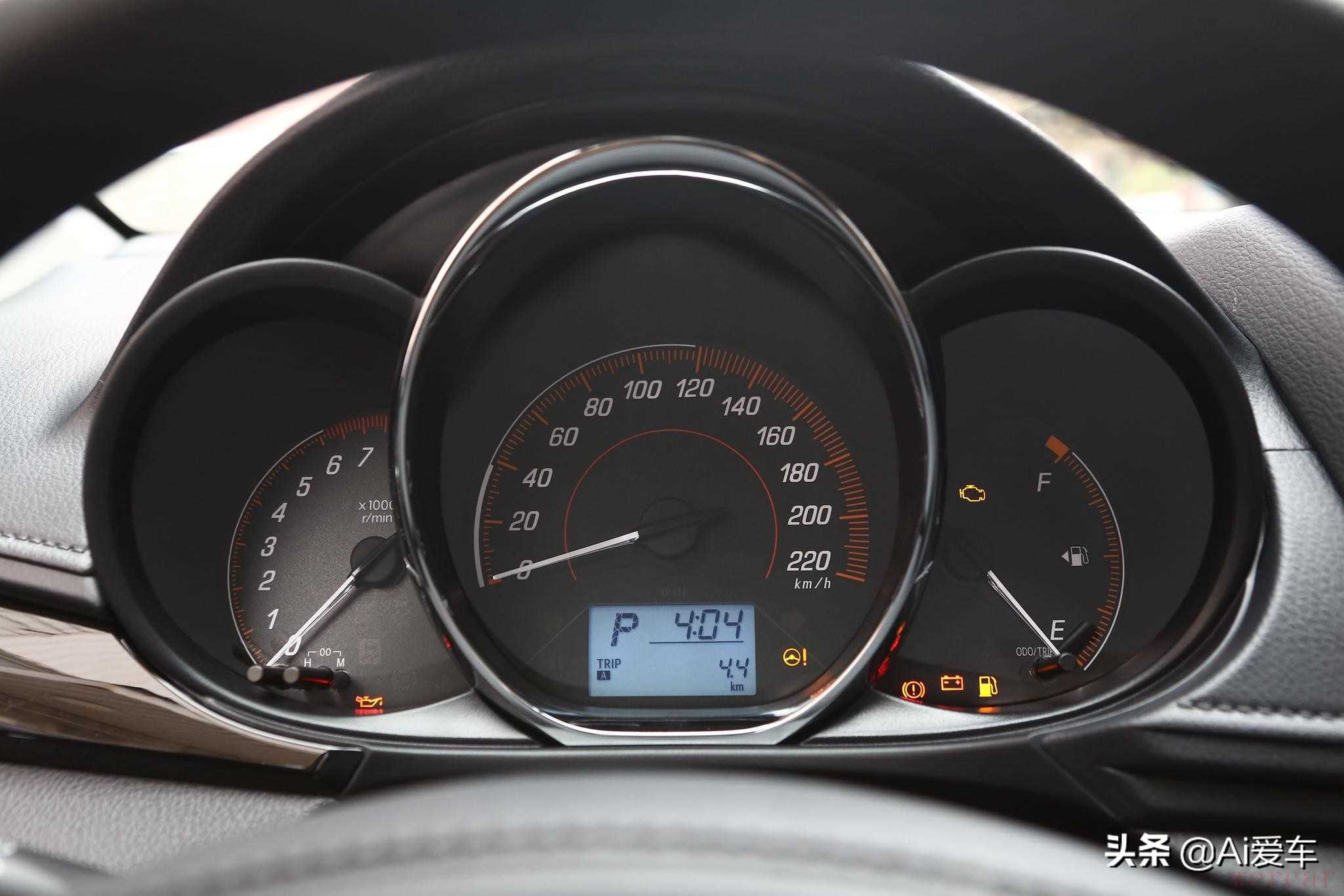塑料三幅式方向盘,握感也就那样,只支持上下调节。炮筒指针仪表盘,信息显示大气直观。