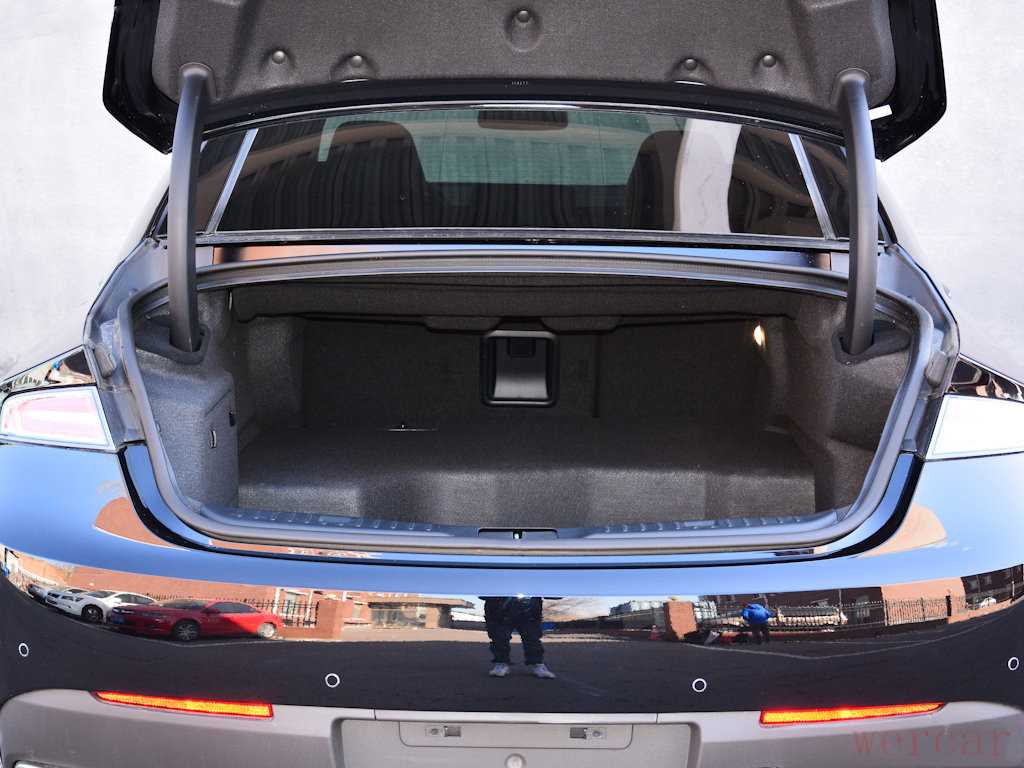 打开MKZ的后备厢,我们可以看到燃油版的林肯MKZ后备厢内部较为规整,并且后备厢容积达到了505L,载物能力还算不错,但是,混动版的MKZ由于电池位于后备厢,占用了不少储物空间,空间表现略差。不过好在座椅放倒后能够达到2700mm的纵深,提高了扩展性。并且MKZ的后排扶手箱与后备厢空间相贯通,相当于将车内的储物空间与后备厢相连接,能够使后排的乘客能够获得后备厢特定位置的物品,这样的设计还是非常人性化的。