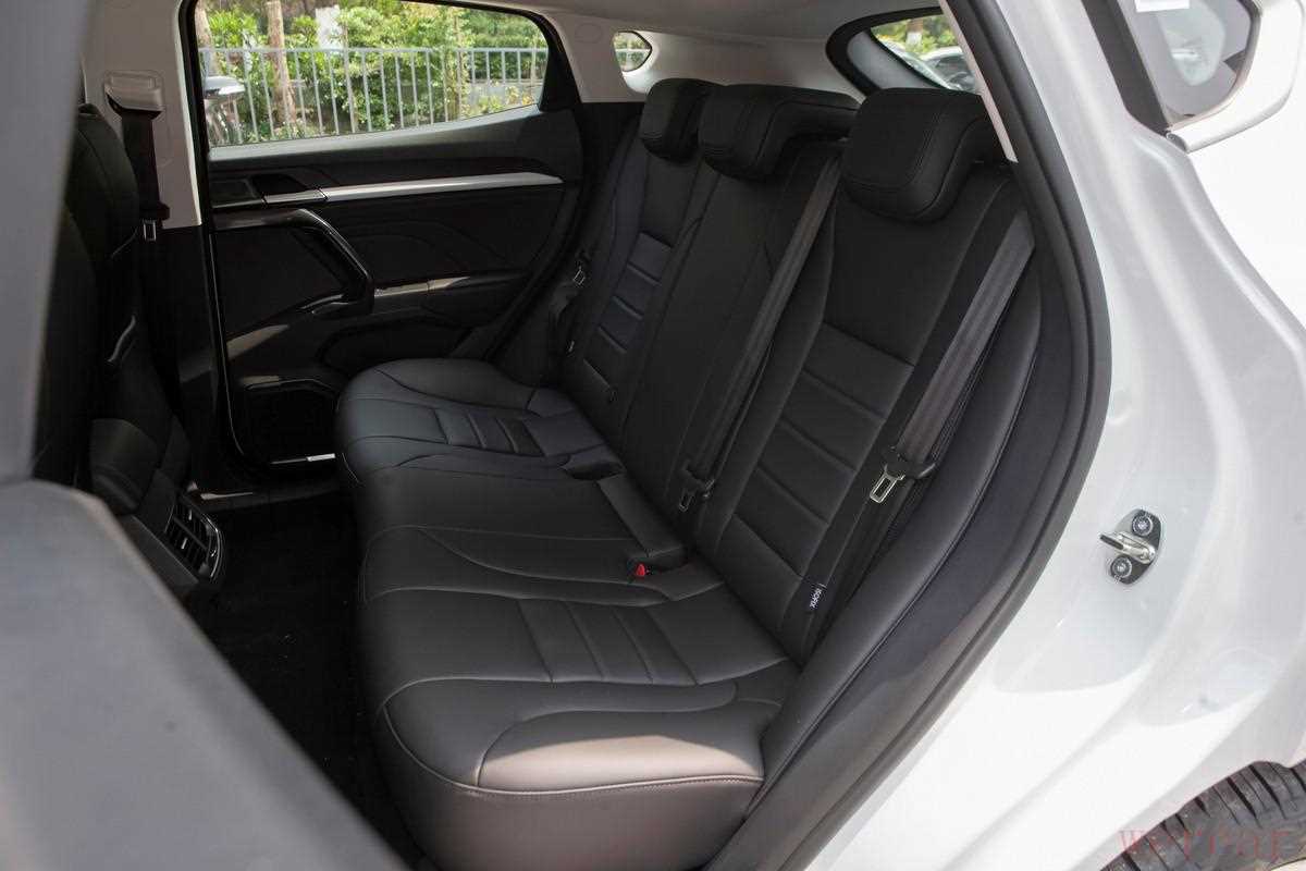 空间方面,具体来看:以笔者176cm的身高为例,将前排座椅调至中部最低位置,还剩余三指的头部空间;保持前排座椅位置不变来到后排,则有着剩余勉强2拳的腿部空间和剩余1指的头部空间,这样的空间表现让人不太满意,并且后排的中央通道,凸起幅度略高,而且纵向长度也不足以放下脚,所以当后排满座时,还是会影响后排乘客的乘坐体验。