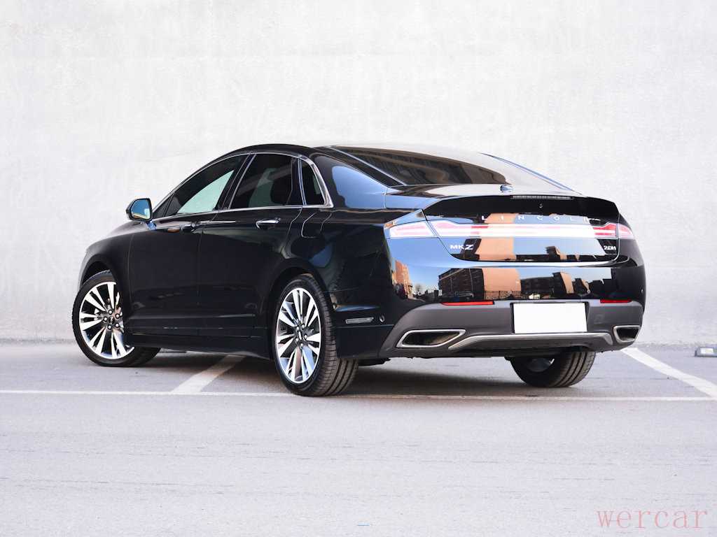 来到侧面,林肯MKZ拥有着4925*1864*1477mm的车身,对比同为美系的凯迪拉克ATS-L更长一些,所以在空间上占一些优势,并且MKZ有着非常倾斜的A柱以及C柱,看起来有一点溜背式的轿跑设计,一条高高的腰线从引擎盖直接拉到车尾,让车身显得更加修长。配备19英寸的双色多辐式轮圈,林肯MKZ给人的视觉效果很好,并与修长的车身相映生辉,更显运动。