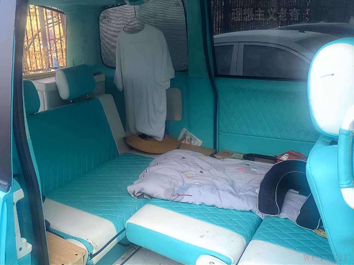 中后排座椅换成了床车专用椅,放平中排座椅,就可与后排拼成一张竖向双人床,如果长度不够可放平后排座椅,根据需要调整,打造移动小卧室,解决旅途休息问题。