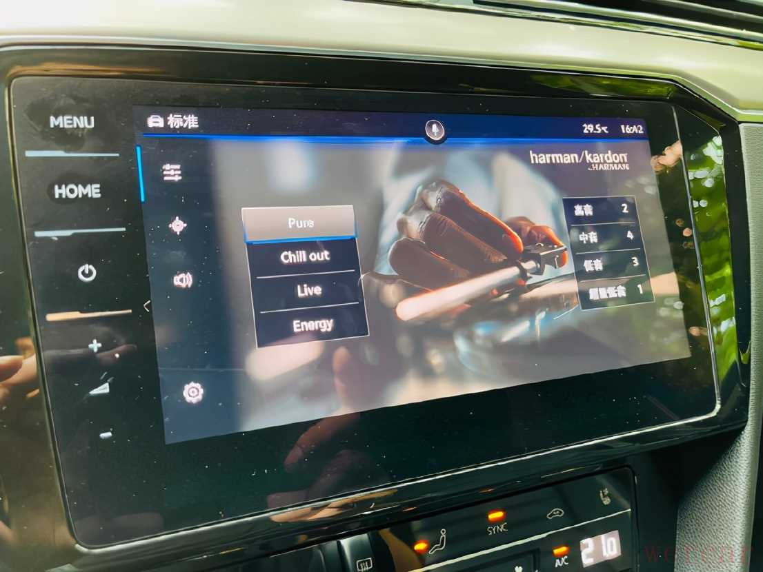 其中顶配车型专属的哈曼卡顿音响是我非常推荐的配置,12个扬声器与16通道立体声环绕配合700瓦的输出功率,以及四种音乐场景的设定,在整体效果上比以往大众配备的丹拿音响明显提升了一个档次。
