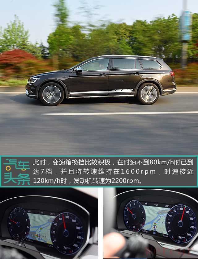 此时,变速箱换挡比较积极,换挡动作基本在2000rpm以内完成,在时速不到80km/h时已到达7档,并且将转速维持在1600rpm,时速接近120km/h时,发动机转速为2200rpm,燃油经济性有了表现很好。