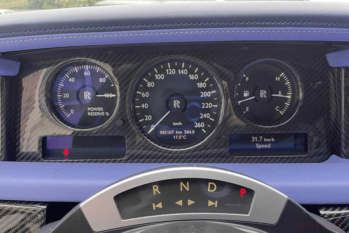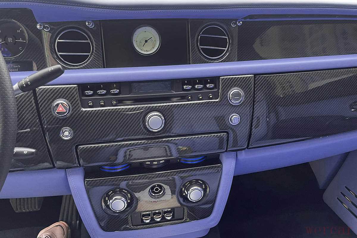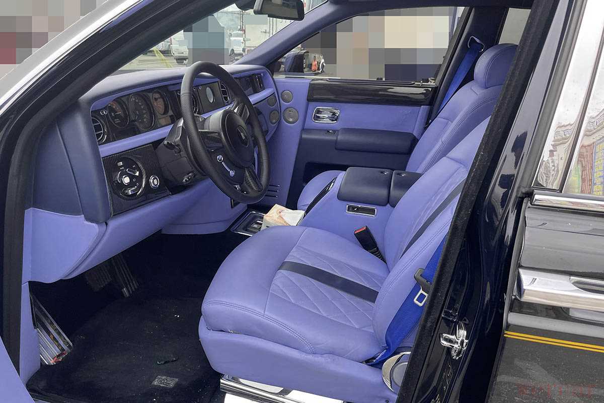 上车,这车的内饰最初是什么样的逸哥无缘看到,不过眼前内饰的样子却很想吐槽一番,紫色内饰加碳纤维饰板,这和幻影的定位总感觉有些格格不入,不知道原车主是咋想的,为什么会改成这个样子?