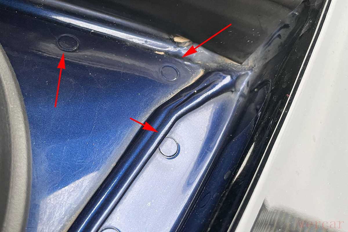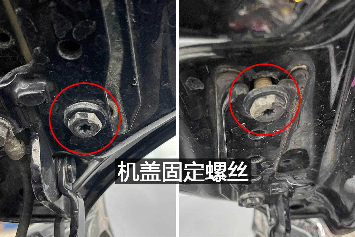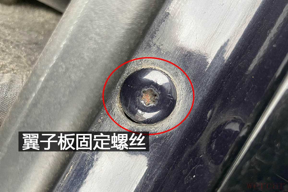 看覆盖件,保险杠、翼子板、机盖,所有的螺丝都有拧动的痕迹。