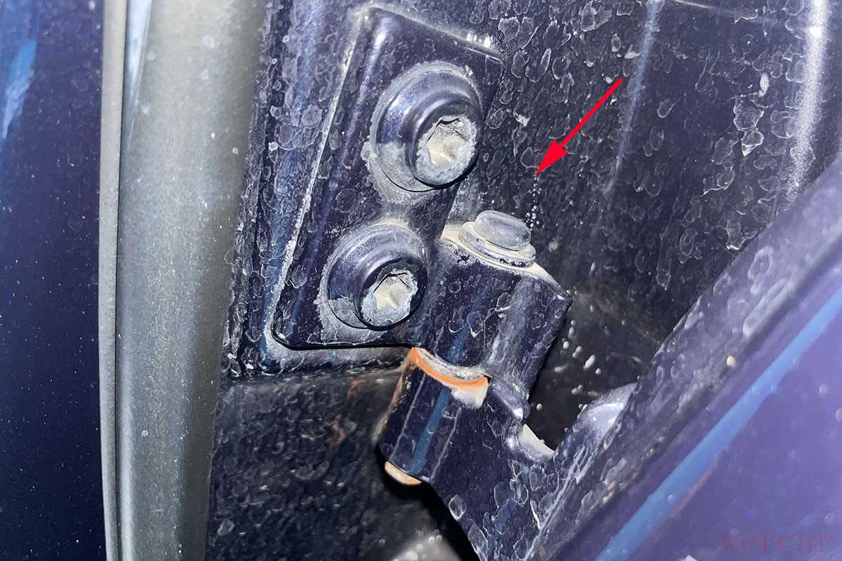 上车之前先把该扒的胶条都扒开看看两侧是否发生过事故,毕竟这车四个车门都拆过,扒开胶条检查焊点并且透过缝隙检查内侧均未发现修复痕迹,那基本就可以确定车子侧边也是没发生过事故的。
