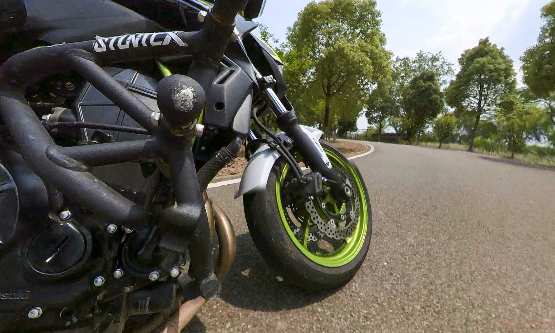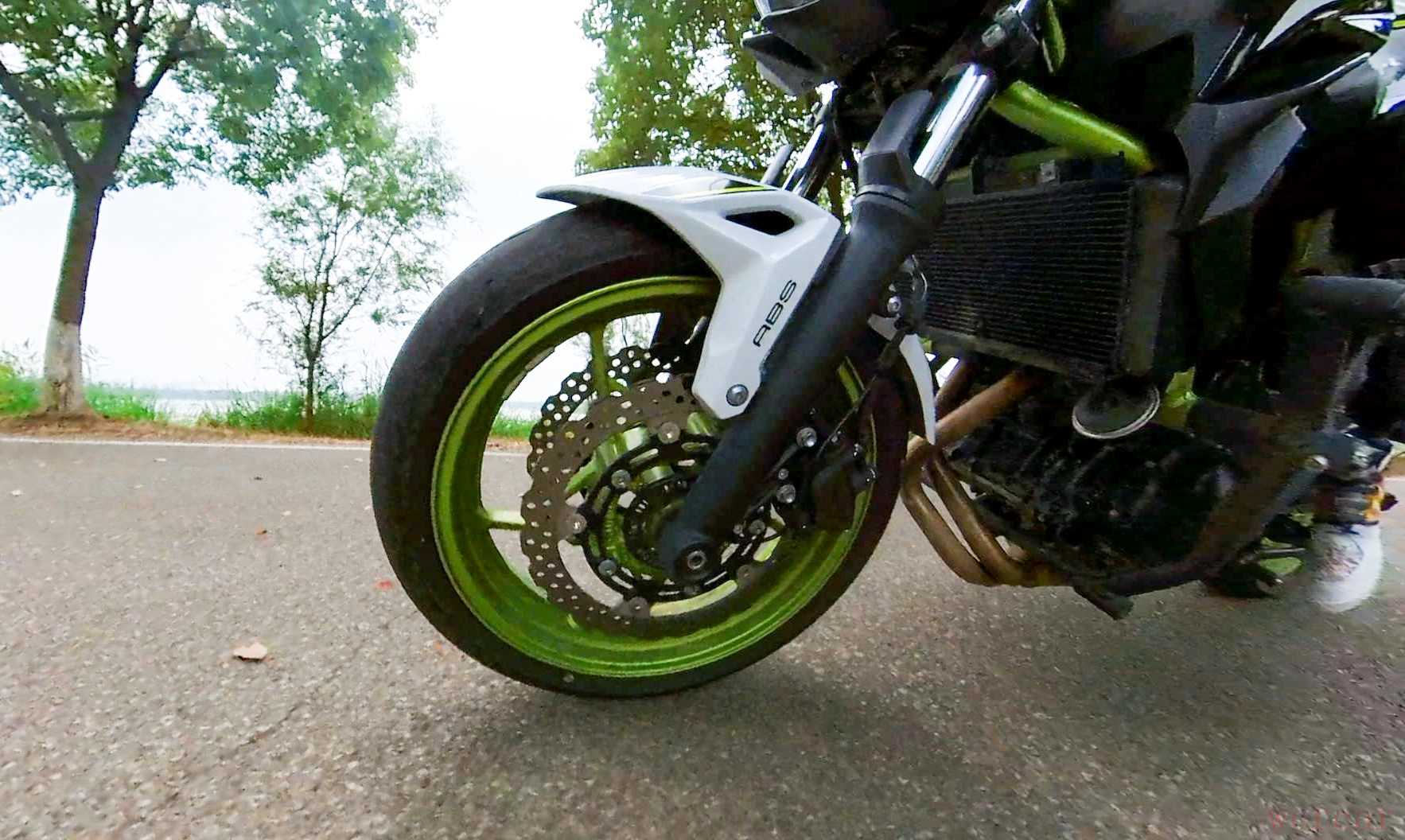很多人都知道,川崎Z650至今还是在用正立式前叉,其实这个级别或者这个价位用正叉的车型不少,比如本田CB500F、雅马哈MT07等等。在这个价位段,川崎Z650配正减并没有什么问题,但如若你比较喜欢跑山压弯,这种情况下正立式前叉的劣势就会凸显出来。毕竟正立式前减震的支撑性不及倒叉,虽然Z650的前减震直径达到了41mm,但依然难以抵挡正叉所带来的不足。