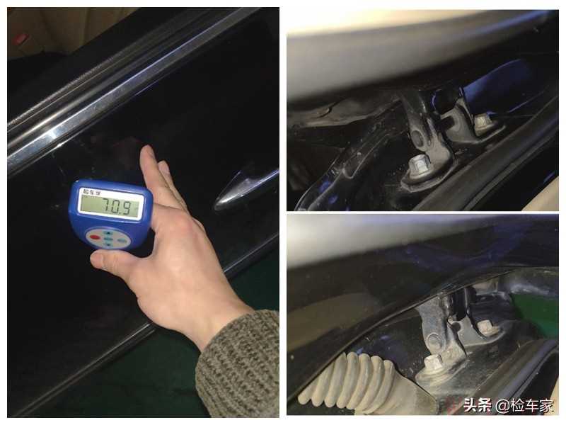 接下来检查到左前门漆面数值也较低,上下两端的固定螺丝都有拆卸。