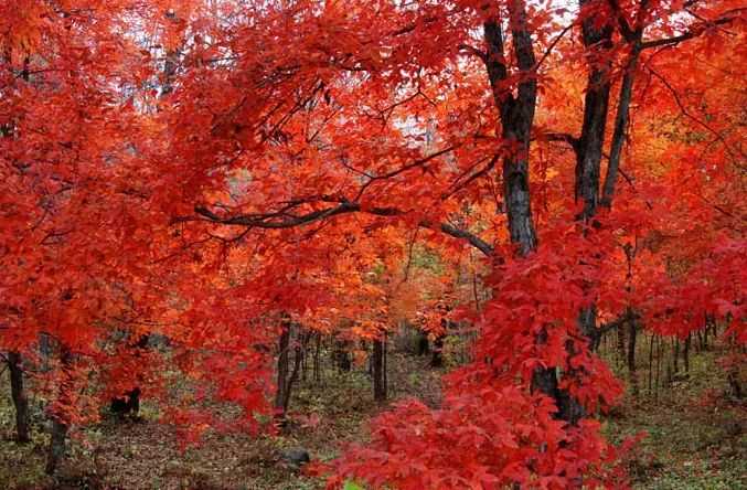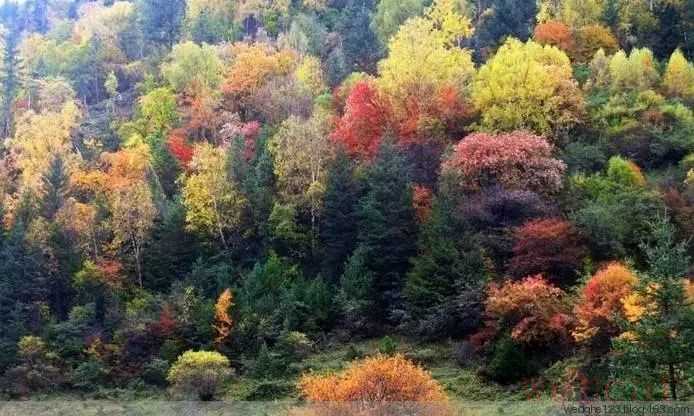 每当金秋季节,漫山遍野,层林尽染:有大红、紫红、探红、糯红、粉红、金黄、鹅黄、草绿、墨绿、咖啡色、褐色的树叶,有一串串鲜红色、金黄色的野果,各种色彩跳跃于群山之间,交汇成一个万紫干红、五彩续纷的彩色世界,宛如一幅绚丽多彩的油画呈现在你的眼前,任何画家手中的笔也难以画出如此绚丽夺目、令人陶醉的色彩世界,任何语言学家的形容在它面前都显得那样苍白无力。