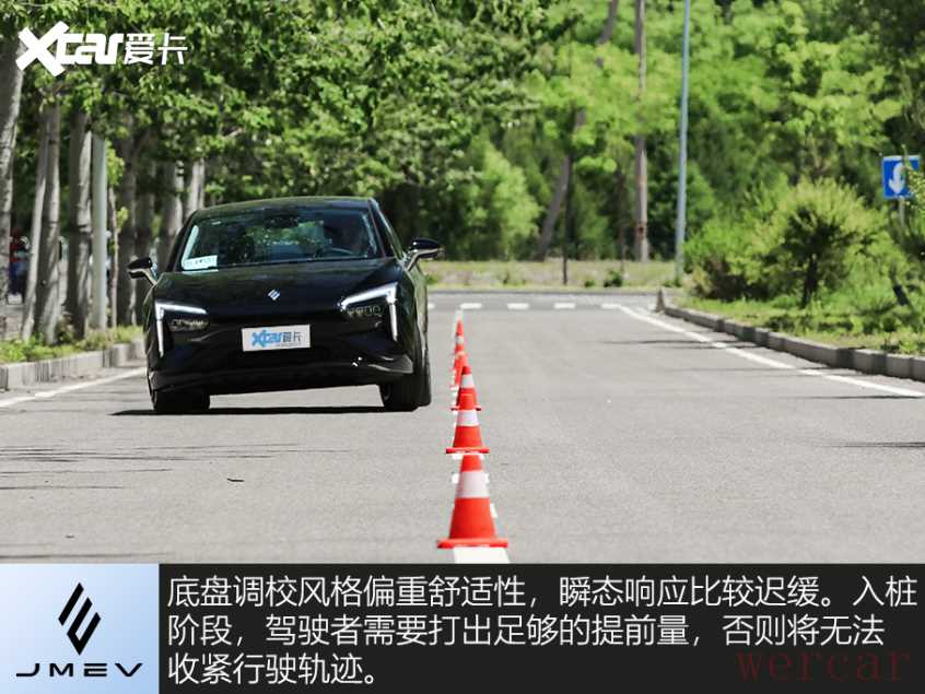 底盘部分,雷诺江铃羿完全倒向了舒适的一端,代价是操控性略显慵懒。日常驾驶时,转向响应存在一定延迟,给人感觉不够“跟手”。而在绕桩时,情况反而略有改观。车头动态不算敏捷,但车尾能够及时跟上车头,灵活性超出预期。底盘设定偏转向不足,“推头”程度容易预判。