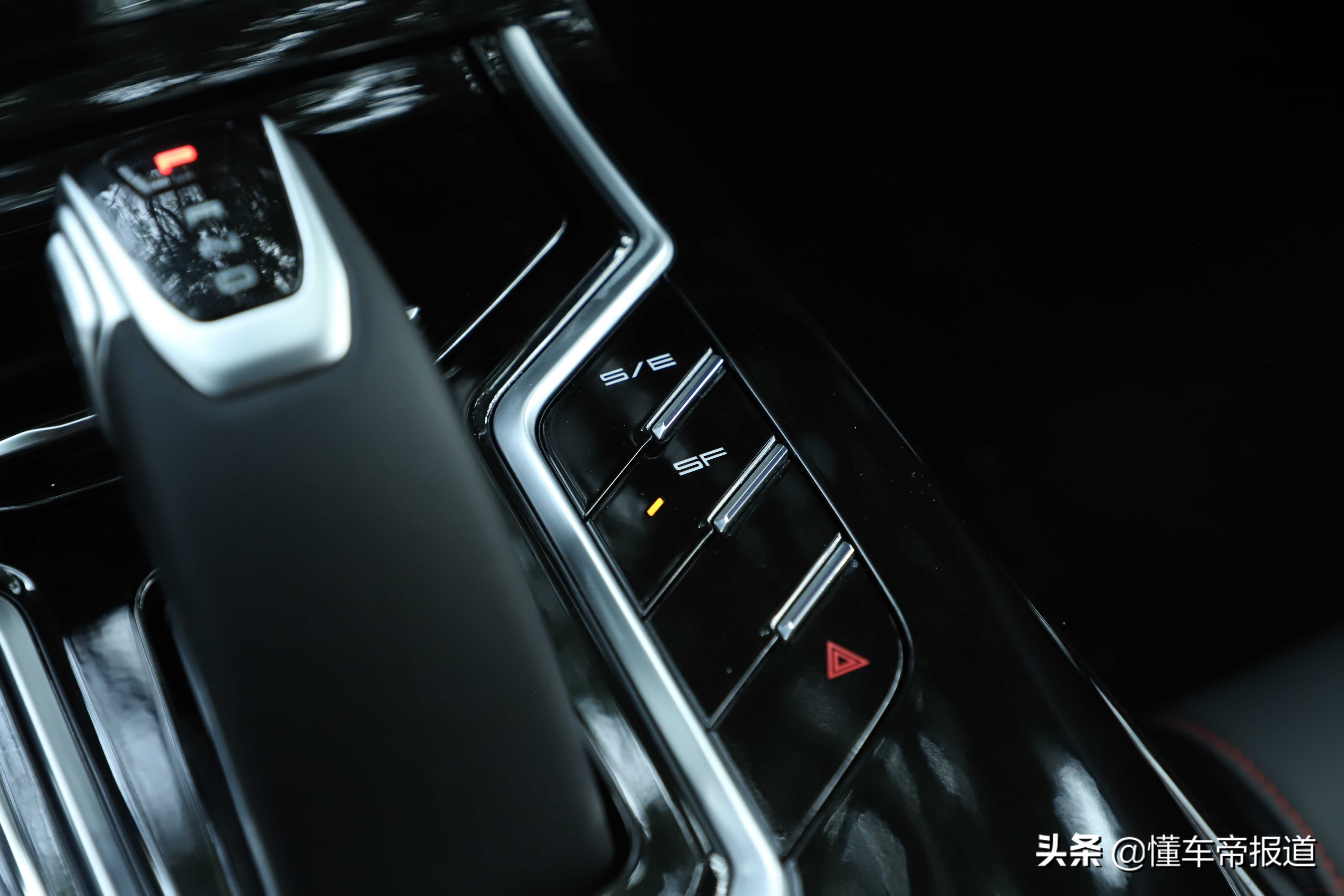 相对于外观,这款车的内饰设计就会显得低调很多,全黑的内饰颜色有些过于沉稳,和车外的各种设计元素总感觉不在一个频道上。不过好在车内用料还算厚道,多处都采用了软质材料,而且银色拉丝饰板的质感也还算不错,双电机板则是配备了仿碳纤维饰板以及红色缝线,能稍微凸显一下运动感。