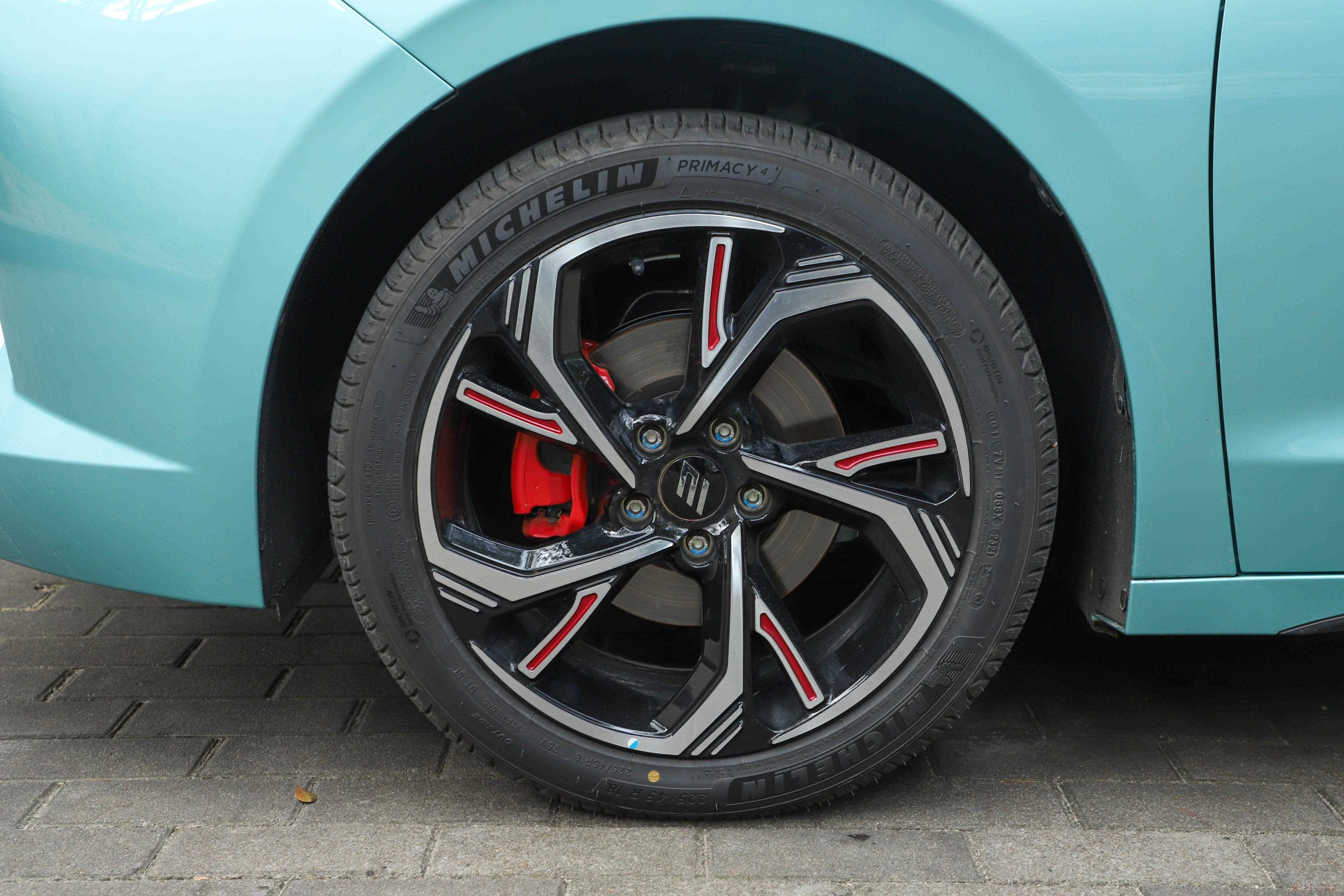 另外,雷诺江铃羿会全系标配米其林浩悦4系列轮胎,我们所试驾的车款单电机版本的轮胎规格为225/45 R18。花瓣形轮辋也比较有设计感,和整车的设计风格比较协调。不过双电机版本的轮辋上还会有红色元素,刹车卡钳也是红色的,运动感更强。