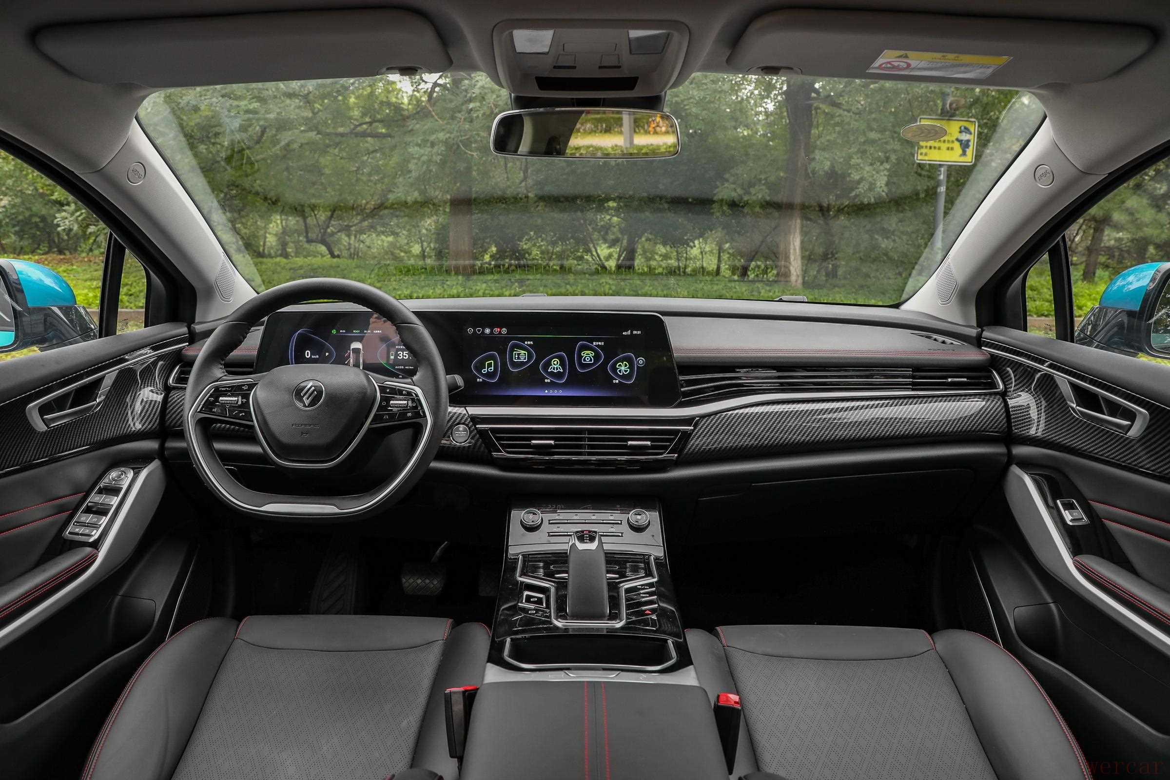 双电机板内饰配有红色缝线和仿碳纤维饰板