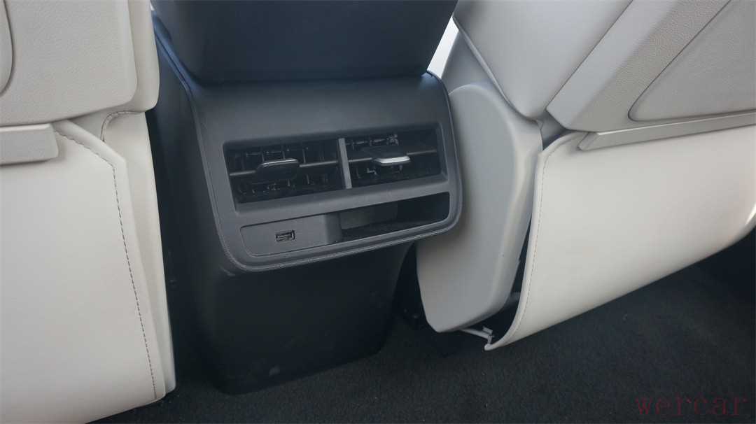 后排带有独立的空调出风口,但是只留下了一个Type-A格式的USB接口,以及一个小尺寸的、可以用于放置卡片、手机之类物体的储物格,希望厂商以后能有机会多加一个USB口。