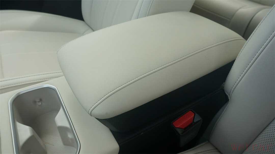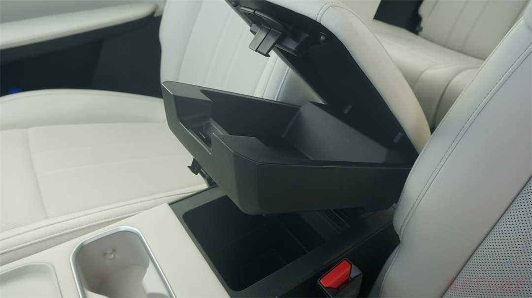 扶手箱的设计非常独特,分成上下两层,皮革扶手下方带有两个不同的开关,左侧的开关可以打开上层较浅的储物格,右侧的开关可以打开下层较深的储物格,对于零碎物品较多的女性用户来说,可以做一个很好的分类放置。而且上层的储物格连同整个扶手是可以直接拆除的。