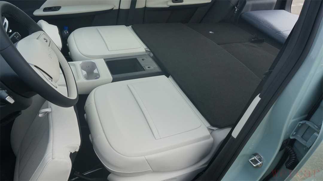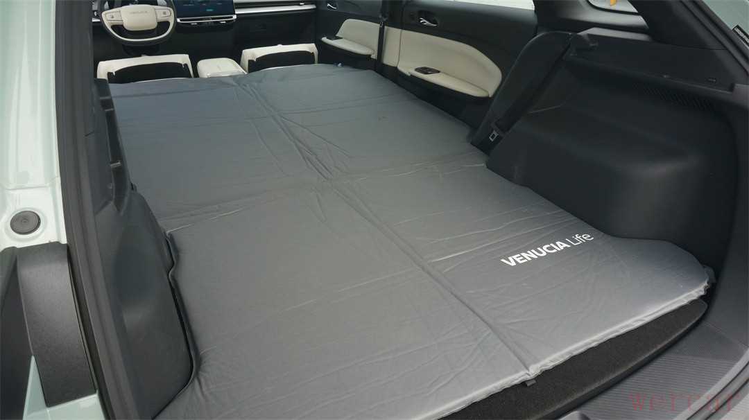 由于优秀的尾箱地台设计,所以VX6的车厢非常适合用于改造成床车。车机的系统里,甚至还提供了专门的“睡眠空间”模式,能够实现将全车座椅放倒、铺平地台之后,通过原厂的可充气床垫,将车厢改造成能够容纳至少两人、超过1.8米长度的“大床房”。不过“变形”的过程稍显复杂,除了前排座椅放倒的过程是电动的之外,包括抽起前排坐垫、放倒后排座椅、用尾厢的遮盖板铺平地台等操作都需要手动完成。