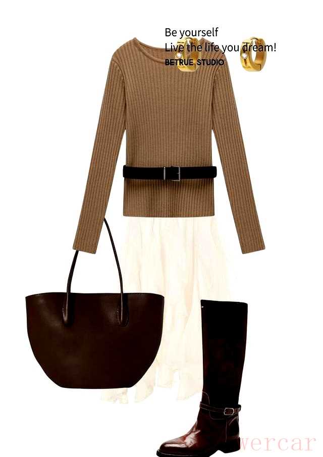 深棕针织衫配米白纱裙这套公式为什么被疯狂复制?