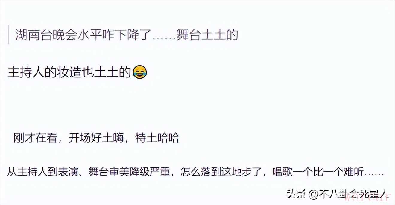 看完整场晚会,网友们不禁感叹——芒果台的晚会水平怎么下降了那么多,只能整个气氛就是又土又嗨。