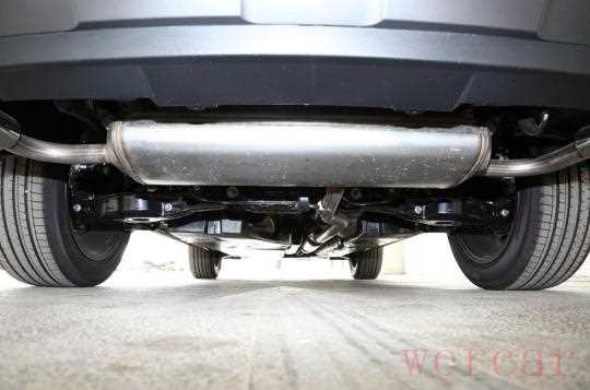 车尾造型依旧比较硬朗,跟车头一样极具视觉冲击力。连接大灯两侧的银色饰条精致感不错,且造型与大灯内部灯带相互呼应。后包围套件与前包围一样,也是采用了黑色+银色的双色设计,而且配备了双边共两出排气,运动感十足。
