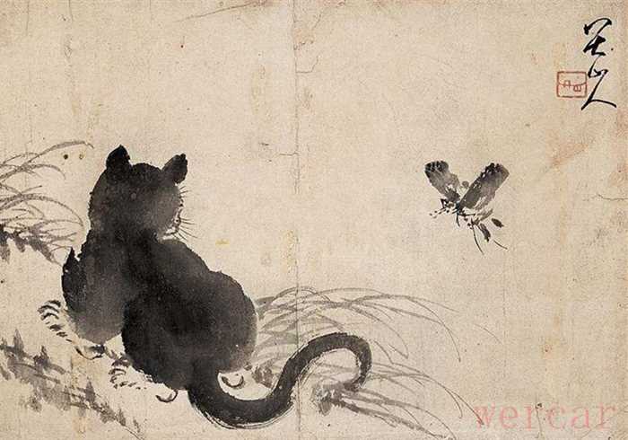 除此之外黑猫也是许多画家笔下的主角,比如八大山人的这幅有名的《猫蝶图》。