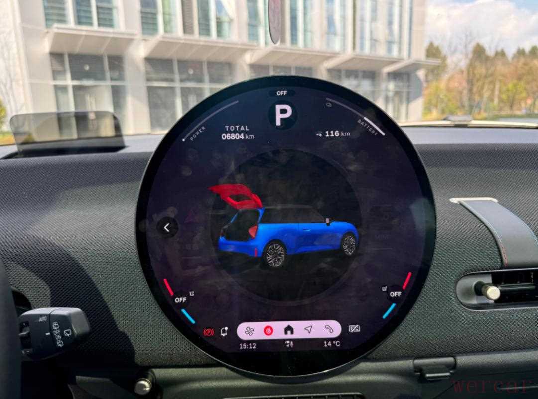 续航方面,MINI电动版搭载一块51.5kWh的三元锂电池组,最高CLTC续航里程452km,官方百公里电耗12.7kWh。虽然它的续航里程相比一些主打长续航的电动车稍显逊色,但对于大多数城市用户来说,日常上下班、周末购物和周边短途游玩其实完全够用。如果在实际驾驶过程中能够合理使用驾驶模式和动能回收系统,还能“挤出”一些续航里程。