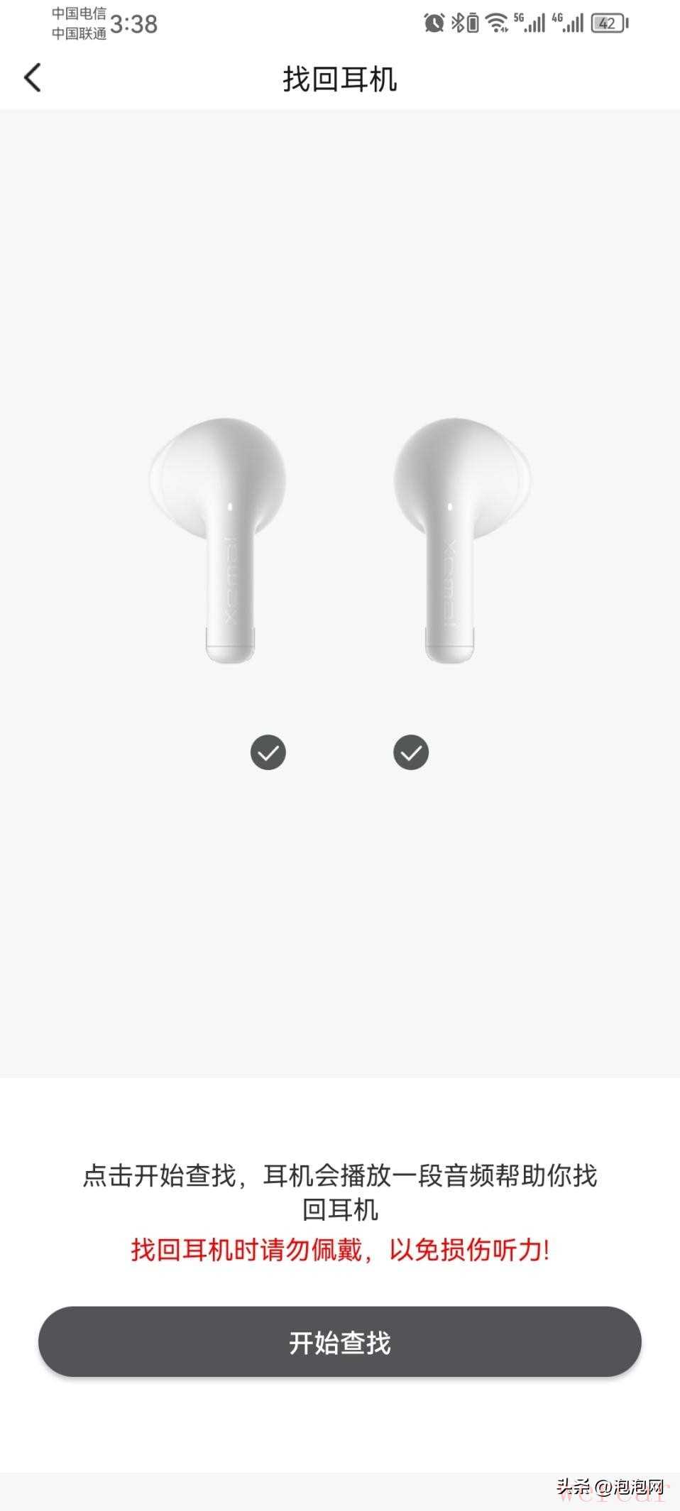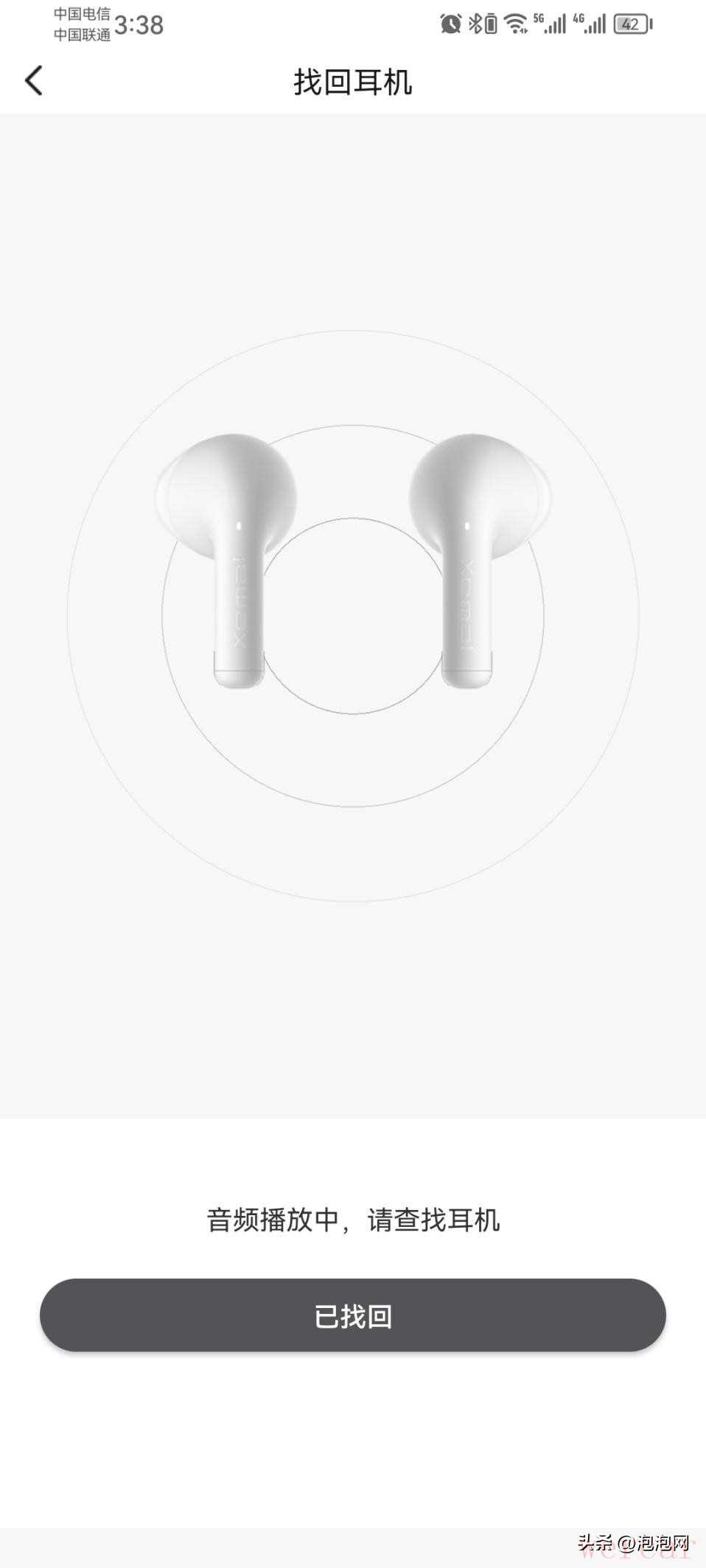 此外,如果实在家里遗失耳机,在耳机连接状态下,可以通过在APP的“找回耳机”功能寻找耳机,只需点击按钮,耳机便会发出刺耳警报声,帮助用户在10范围内找到发出声源的耳机,此功能十分适用于办公室、家里等小场景寻回。