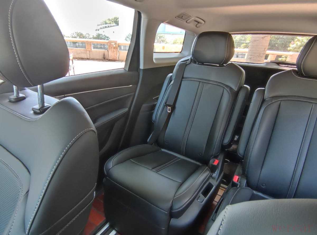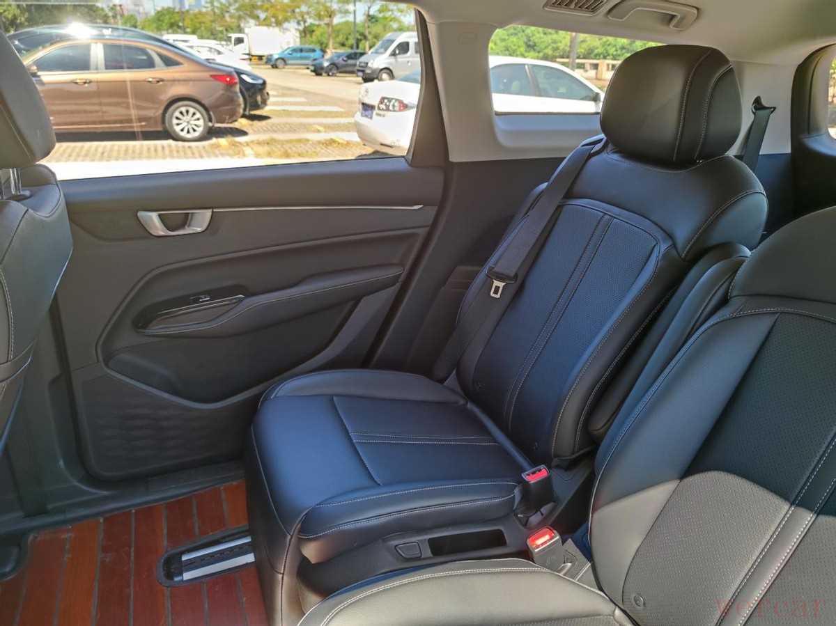 不过我仍觉得,凯捷真正打动我的点,还是它的座椅和空间表现。如图,在我将第三排座椅收纳至与地台纯平后,凯捷第二排座椅就能向后延展不少,然后座椅靠背也能大角度调节。