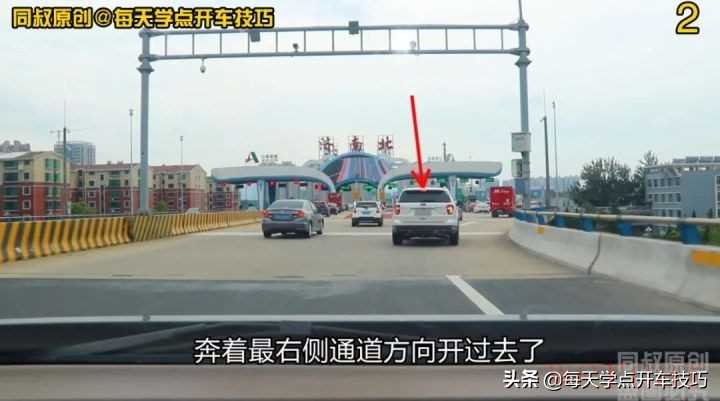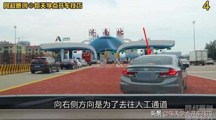 外地车辆或者不太熟悉出口通道设置的司机,正在这里纠结走哪条车道。灰色轿车犹豫片刻,最后还是选择了向右侧方向开过去。