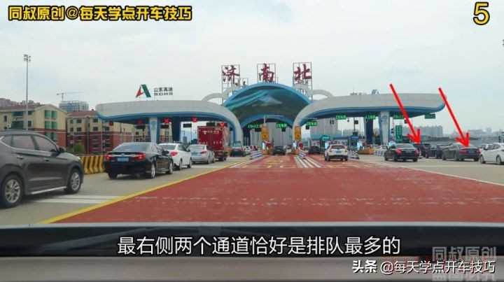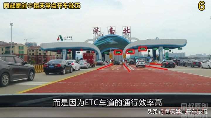 向右看你会发现,最右侧两个通道恰好是排队最多的,而中间的三个ETC 专用通道是车辆最少的。车辆少,是不是意味着安装ETC的车辆少呢?个人感觉不是这样的,排队车辆少,并不代表安装ETC的车辆少,而是因为ETC车道的通行效率高,所以,ETC车道没有排队滞留现象。