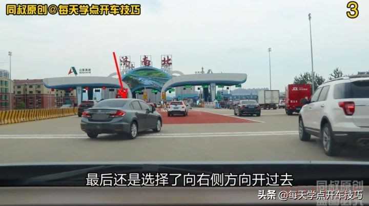 大概是一路开过来,通道众多,一下子有点眼花缭乱,不知道应该走哪一条通道。可能是没安装ETC,向右侧方向是为了去往人工通道,其实只要写有人工加ETC的通道,没有ETC的车辆也都可以走。