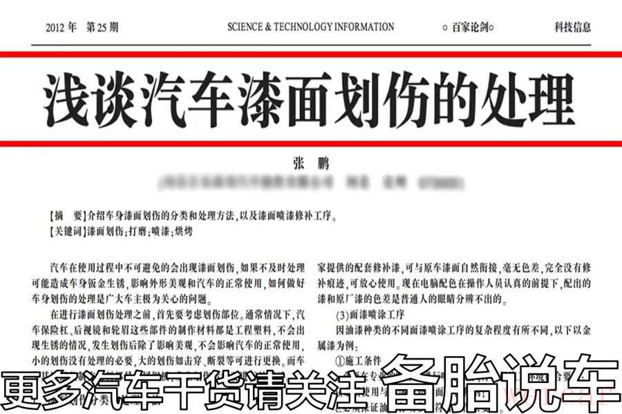 4S店的喷涂工艺,确实还真的是更有保障一些的。张鹏发表在期刊《科技信息》上面有篇论文的,《浅谈汽车漆面划伤的处理》,上面提到。