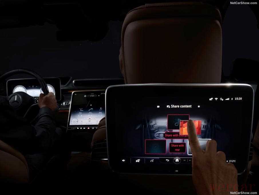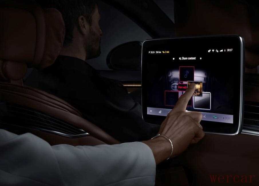 移步到下一个配置豪华型,在它身上你就可以逐步解锁新S级更多姿势了,首先后排做了大升级,比如后排双11.6英寸触摸屏、无线充电、电动调节、多媒体屏幕、后排座椅电动调节、后排座椅通风等老板喜欢的配置都齐了,而且扶手箱上也多了一块7英寸小平板,有了它,你就可以体验新S级的多屏联动功能。